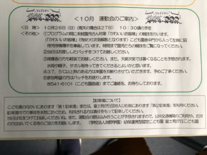★卒園児さんへ・・・プログラムの最後のほうに卒園児さんの競技を行います。大きくなった姿を見せてください。待っています。